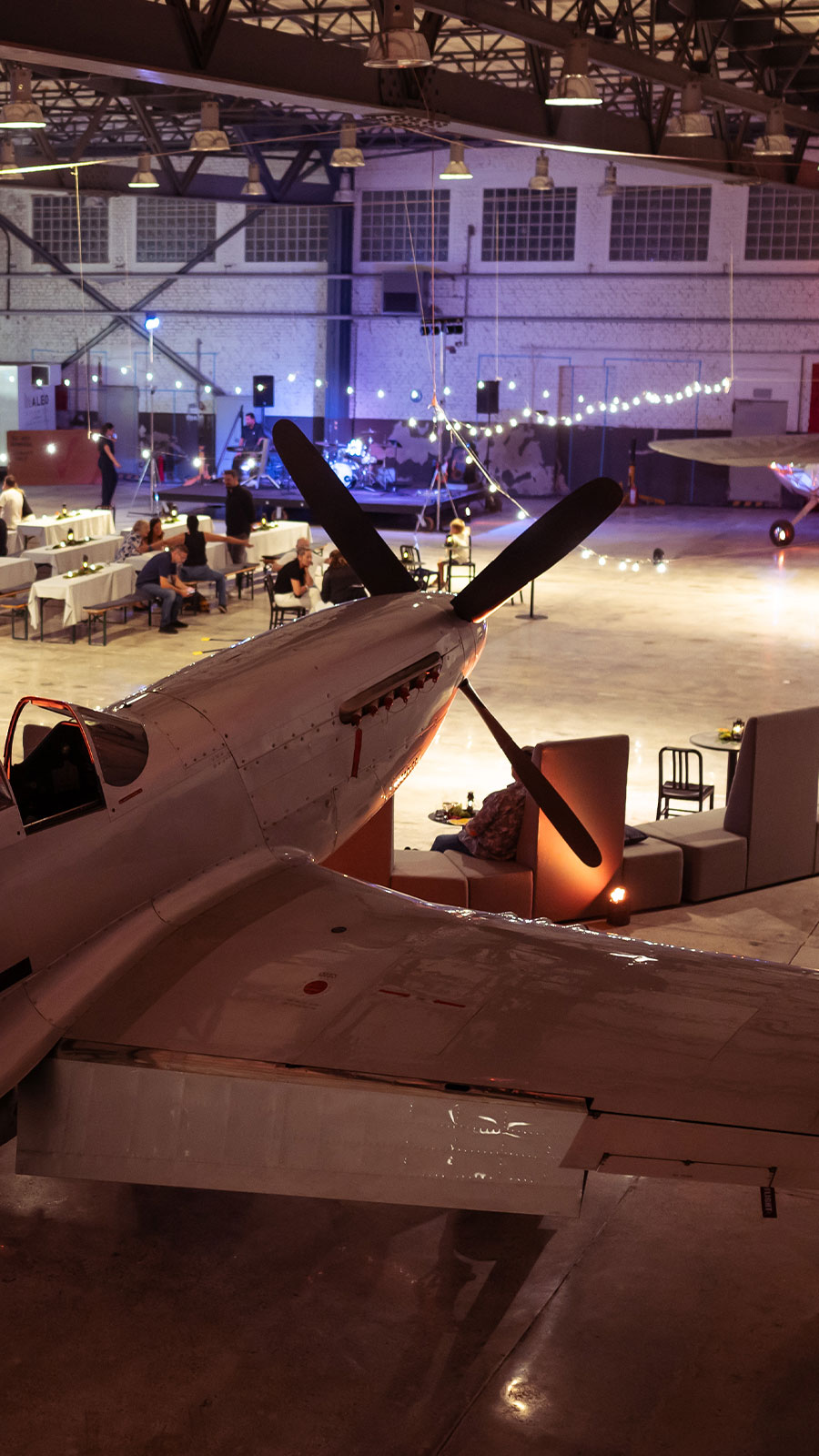 Ab 2026 steht die große Flugzeughalle auf der Westseite für Sie mit einer Lounge für Events und Feiern zur Verfügung. Dank einer flexiblen Raumgestaltung ist Platz für Ihre Veranstaltung jeder Größenordnung.